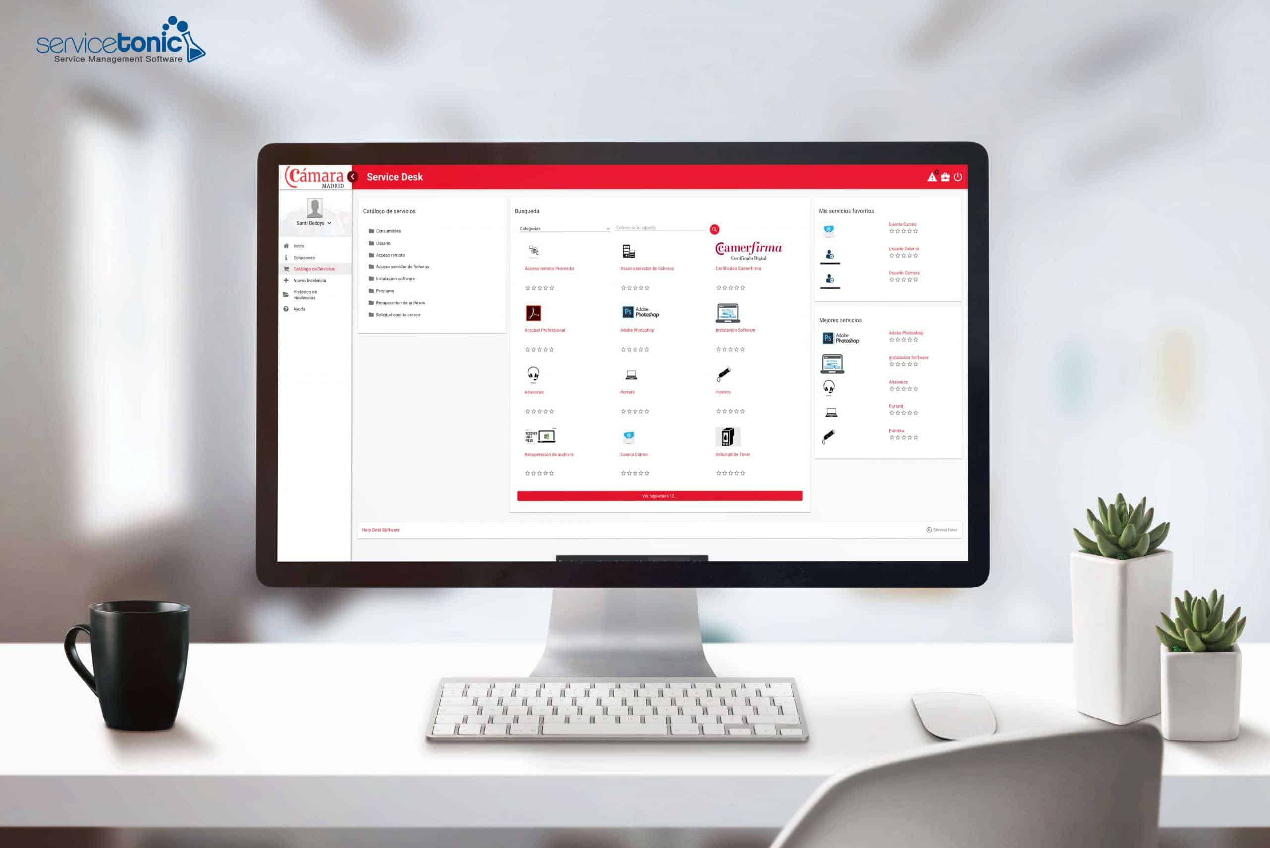ServiceTonic proporciona a Cámara de Madrid un sistema ágil para gestionar las peticiones e incidencias del área de TI, junto con el inventario de sus activos. El Portal de Usuario, el Catálogo de Servicios y la automatización de los procesos de aprobación, son algunas de las funcionalidades que ayudan a mejorar la experiencia de sus usuarios y la gestión interna de su departamento de TI.