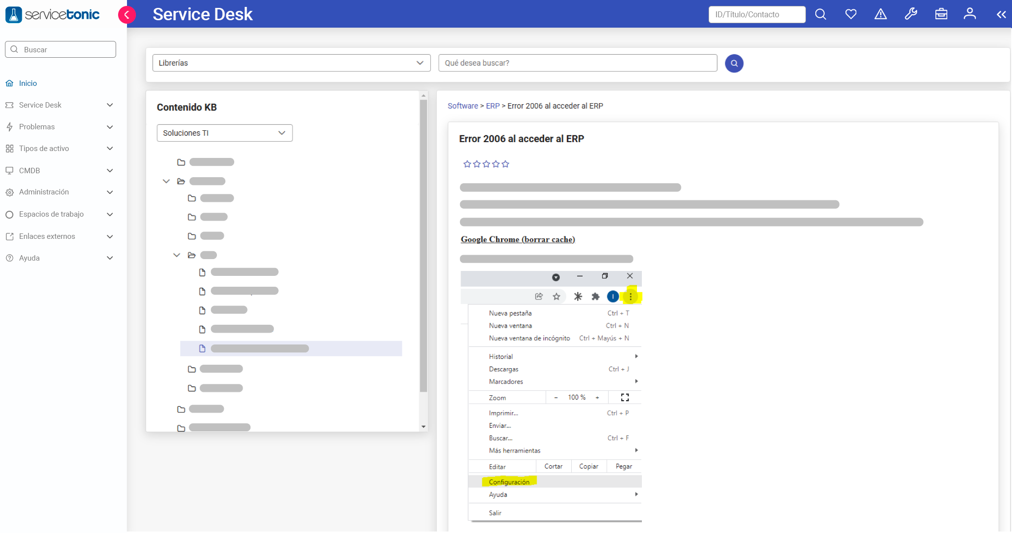 - Cree y administre su propia base de conocimiento para que sus usuarios encuentren respuestas a las incidencias que puedan tener.