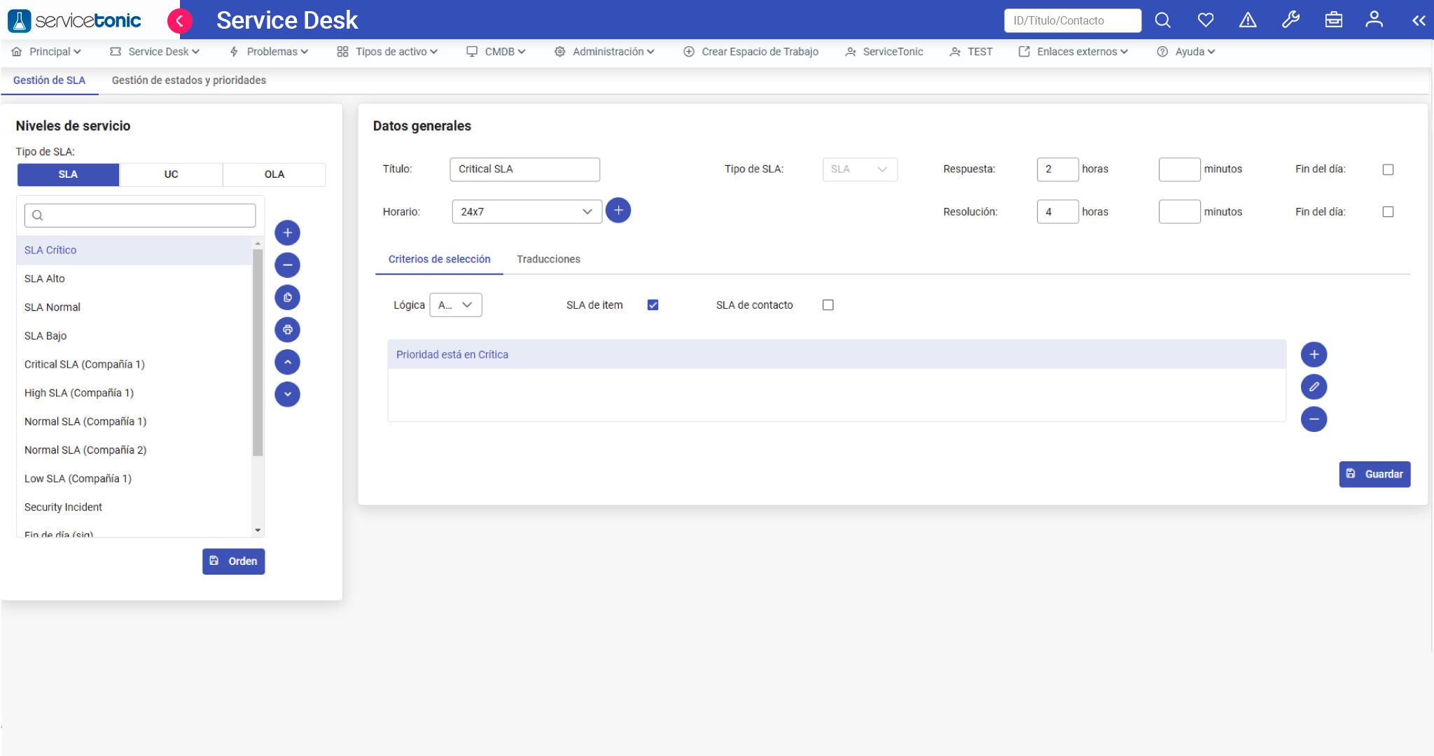 - Seguimiento de todos sus acuerdos de nivel de servicio (SLA).