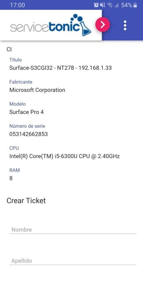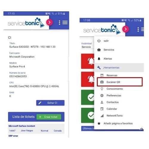 Once the asset has that label, any user, through a generic QR code reader installed on their cell phone or from ServiceTonic’s own scanner available in its version for smartphones, can scan it and consult the device information. You can even open the ticket on site to report an incident or make a request. The ticket is immediately forwarded to the IT manager and can then be resolved.